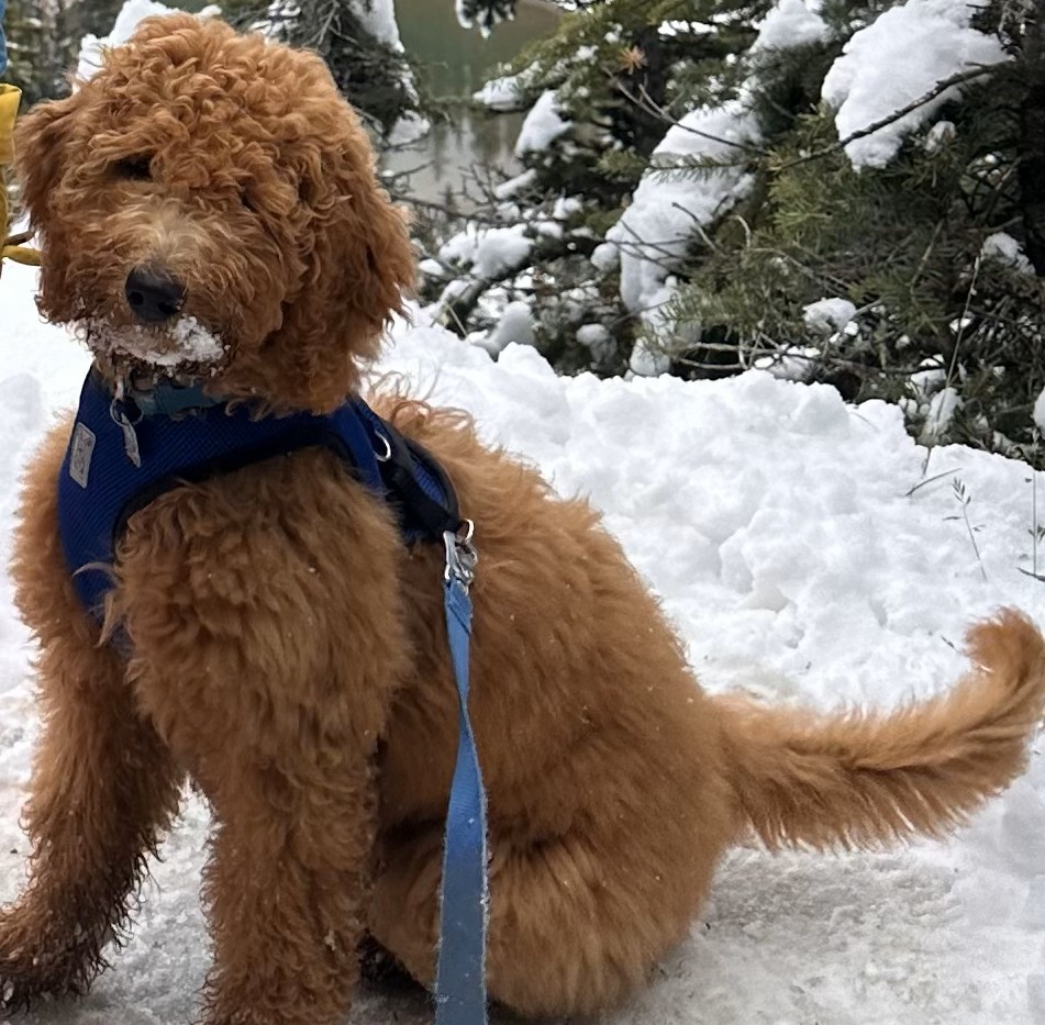 “Hi Corine! Just wanted to send you a pic of Pippi! We took her for her first hike to the Lake Agnes Tea House yesterday. It was her first time seeing snow and she was in heaven .